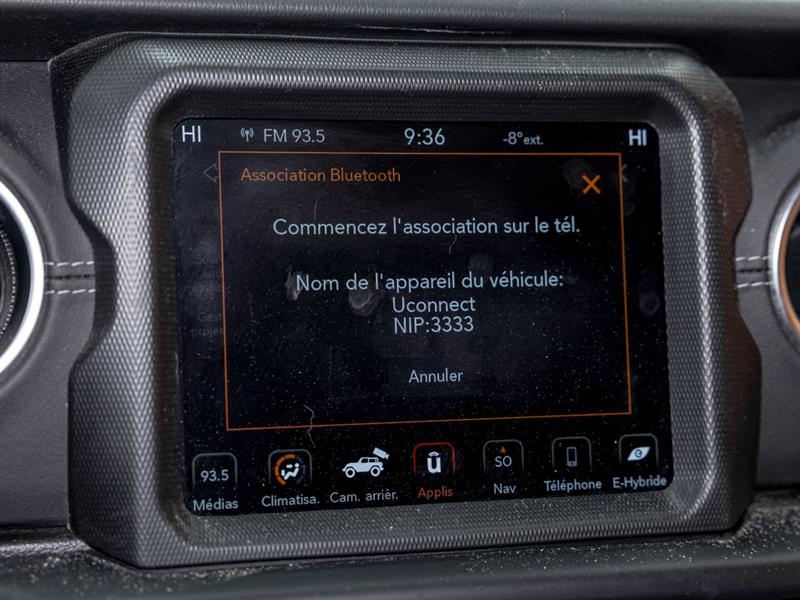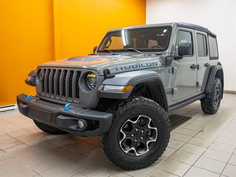 Come see it! VERY WELL EQUIPPED. 4xe Rubicon 4x4 edition with 2.0L Turbo Engine (201 kW) + Electric Motors (100 kW), 17.3 kWh Lithium-Ion Battery, Total Range up to 600 km, Regenerative Braking System, Cold Weather Group, Trailer Tow and Auxiliary Switch Group (capacity up to 3500 lbs), Technology Group, GPS Navigation System, Leather seats, Heated Seats, Heated Steering Wheel, Alpine Premium Audio System, Android Auto / Apple Carplay app, Remote Starter, Integrated Off-Road Camera, Trailer Hitch, Anti-Spin differential rear axle, Sport Suspension, Sport Bar, DANA Axles, Skid Plates, Auxiliary Switches, Keyless Entry, Push Button Start, Automatic Climate Control, Cruise Control, Steering Wheel Controls, UConnect Multimedia Center, 8.4-inch Touchscreen, OnBoard Computer, Off-Road Data, Connectivity Group, Bluetooth Connectivity, HD Radio, SiriusXM Satellite Radio Ready, 4G LTE Wi-Fi Access, 115V power outlet, AUX Inputs, USB Ports + ALL STANDARD EQUIPMENT.