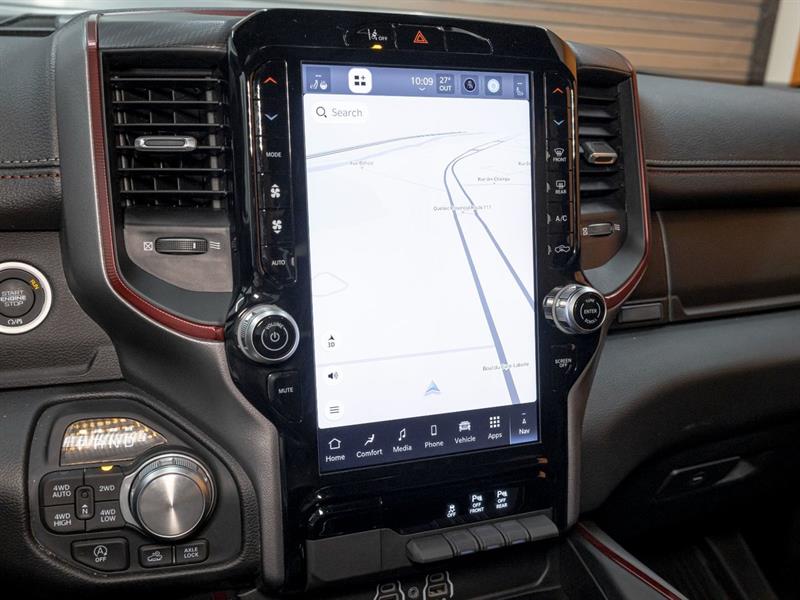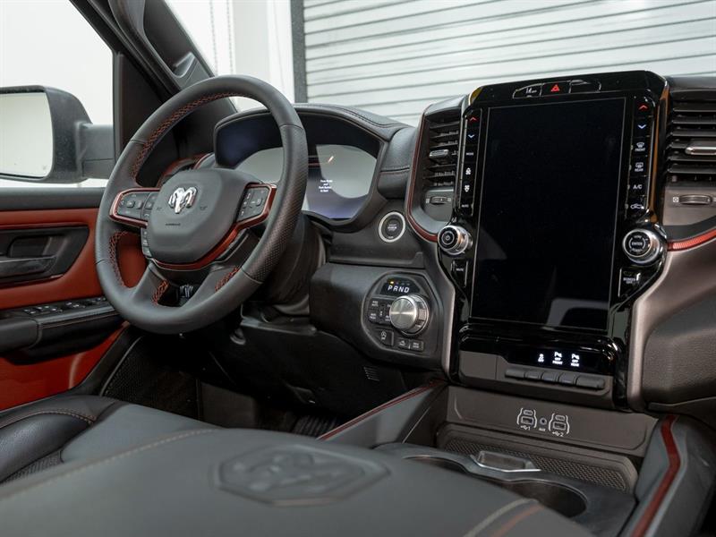 WOW! À voir! / Come see it! TOUT UN CAMION! / VERY NICE TRUCK! Version Rebel Crew 4x4 avec Moteur 3.0L I6 Twin-Turbo Hurricane, Groupe sécurité Niveau 1 / Level 1 safety group, Système de navigation GPS, Écran tactile 12 po, Sièges chauffants, Volant chauffant, Sièges baquets, Console centrale, Siège électrique, Application Android Auto / Apple Carplay, Système audio Alpine premium, Attelage remorque Classe IV, Différentiel arrière 3.92, Régulateur de vitesse adaptatif, Caméra arrière Park-View, Alerte d’angles morts, Alerte de trafic transversal, Alerte de collision, Aide au maintien de la voie, Système de gestion active de la voie, Freinage d’urgence automatique, Système de détection des piétons, Aide au stationnement Park-Sense, Capot sport performance Mopar, Mags aluminium Rebel, Plaques de protection, Lunette arrière coulissante électrique, Démarreur à distance, Démarrage sans clé, Bouton-poussoir, Climatisation automatique bi-zone, Groupe électrique, Rétroviseurs extérieurs chauffants et électriques, Commandes au volant, Centre multimédia premium, Ordinateur de bord, Données de performance off-road, Groupe connectivité, Connexion Bluetooth, Radio HD, Préparation pour radio satellite SiriusXM 360L, Accès 4G LTE Wi-Fi, Prise 115V, Ports USB + TOUS LES ÉQUIPEMENTS DE SÉRIE / + ALL STANDARD EQUIPEMENT